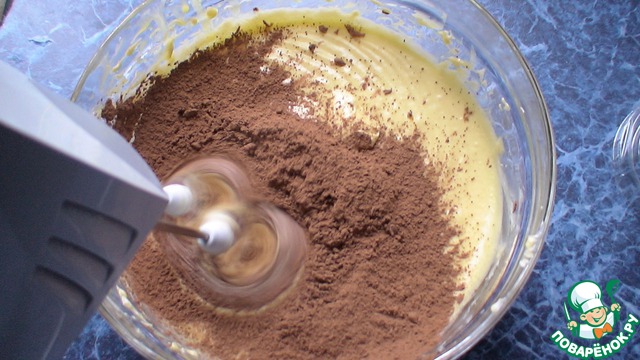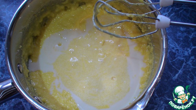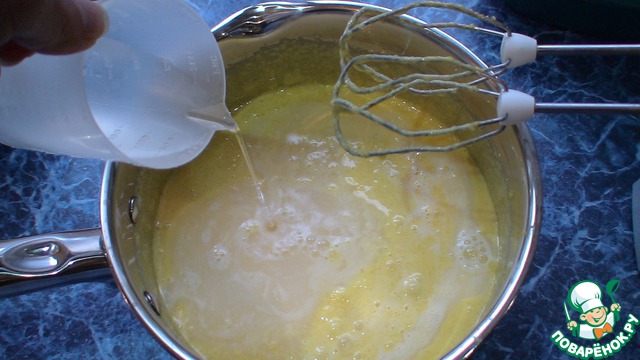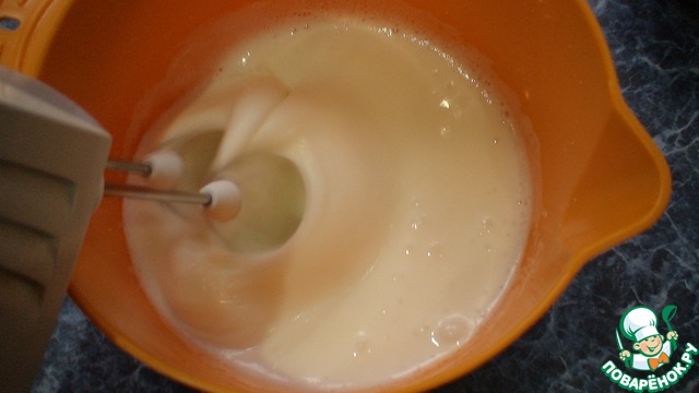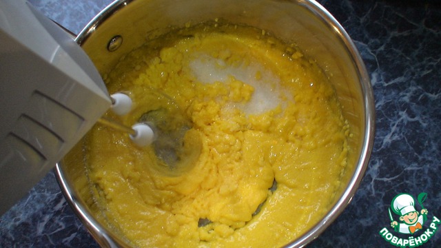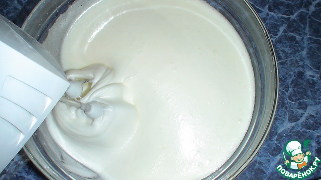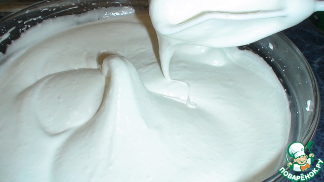 Во взбитый с сахаром белок по одному вводим желки, взбиваем массу.