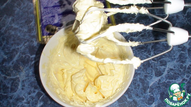 Сливочное масло комнатной температуры взбить в пышную массу. Постепенно добавлять сваренную, остывшую яичную массу и взбивать.
