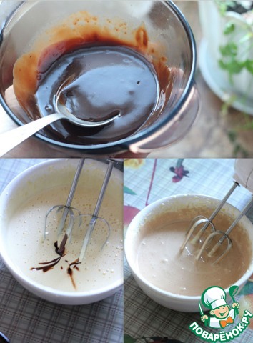 Шоколад растопите на водяной бане, добавив 2 столовые ложки сливок. Добавьте жидкий шоколад в желтки, сразу хорошенько перемешайте.