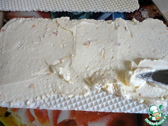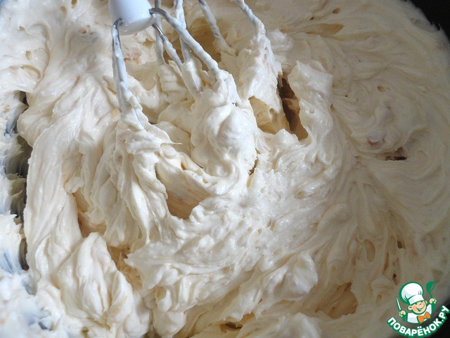 Отложить 1/3 сливок. Остальные сливки аккуратно смешать с абрикосовым маскарпоне, это будет наш вкуснейший крем.