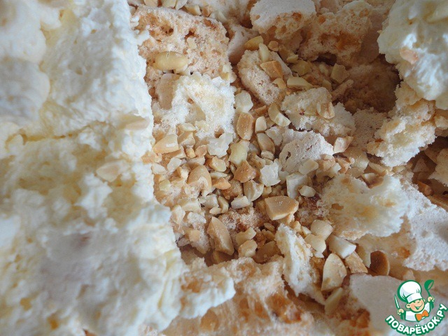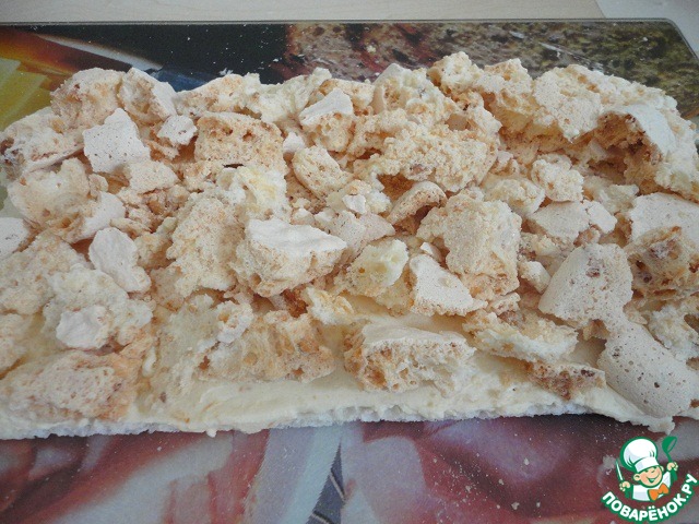 Получившееся безе остудить и разломать на кусочки. Натереть цедру.
