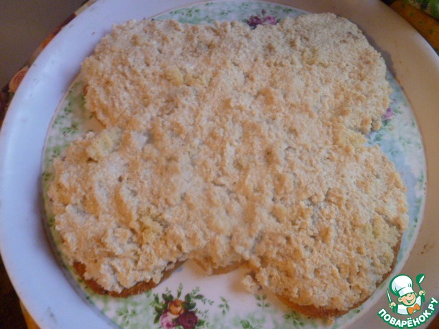 Сначала я выложила немного начинки на песочный корж, разровняла.