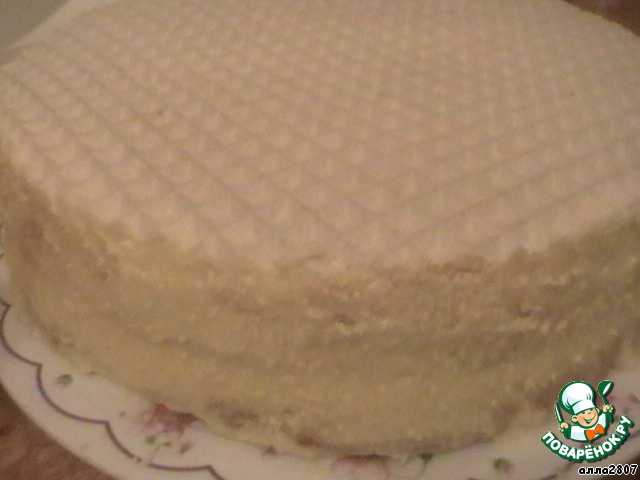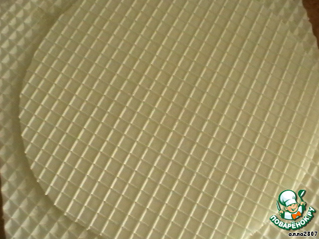 Если купили квадратные вафельные коржи, как у меня, можно легко вырезать круг нужного диаметра.