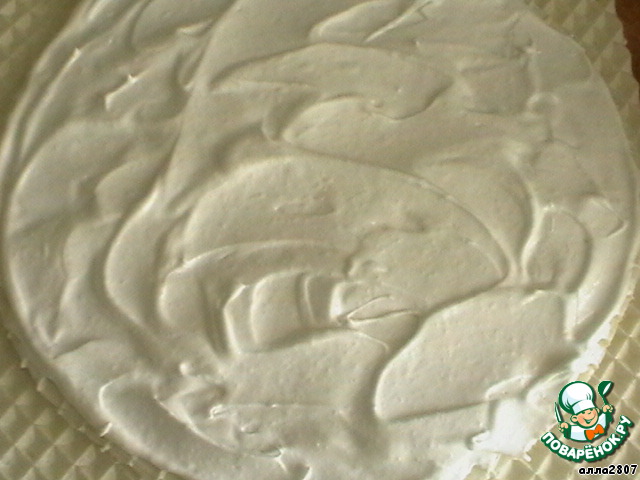 Вафельные круглые коржи промазать взбитыми белками.