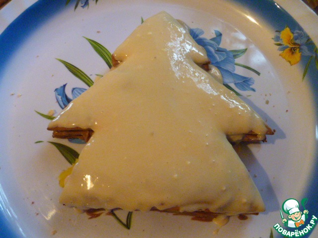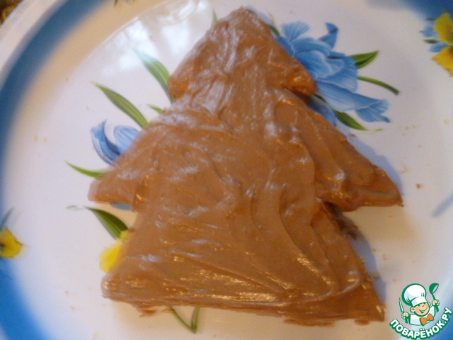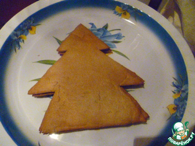 Выпекать коржи в разогретой духовке при 180 градусах 7 минут. Выпечь 5 ёлочек.