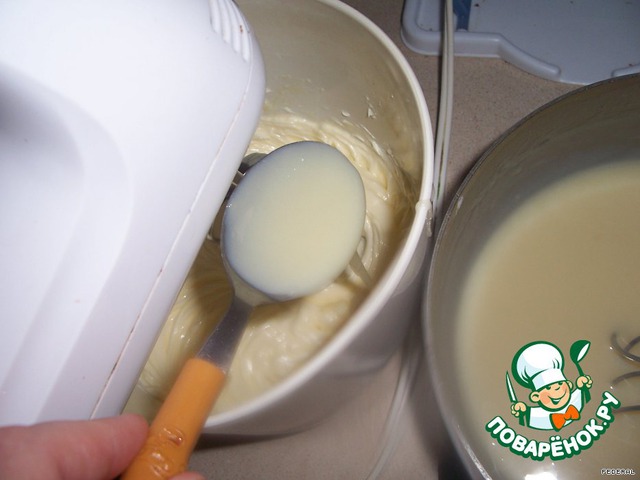 Потом взбить масло и понемногу добавлять молочную массу, продолжая взбивать.