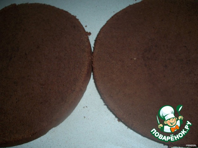 Выпекать в 26 см. формочке при 180гр. 40-45 минут, или до готовности, остудить и разрезать на две части.