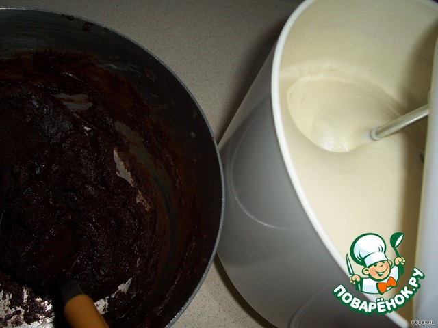 Половину выливаем в нашу шоколадную массу и перемешиваем аккуратно.