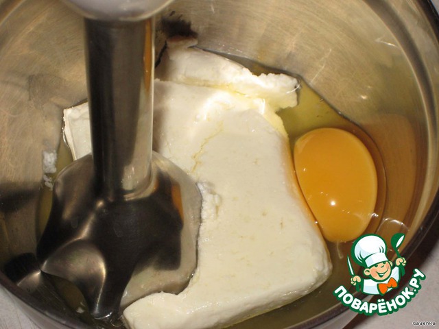 Этим временем творог растираем в блендере с яйцами в однородную массу, желательно чтобы масса получилась без крупинок.