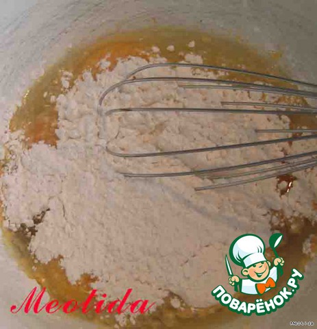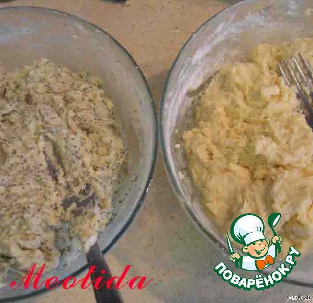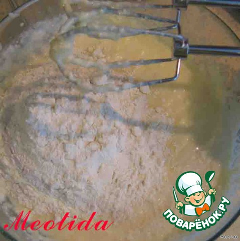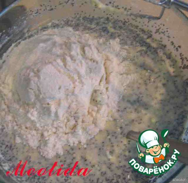 во вторую миску добавляем мак, взбиваем, постепенно добавляем 2 стакана муки