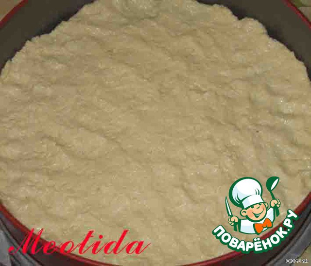 круглую разъемную форму застилаем бумагой, смазываем маслом, выкладываем тесто (руки надо смачивать постоянно водой и мокрыми руками разравниваем тесто, форму можно придавать любую, какую подскажет Вам Ваша фантазия, не только круг:) )