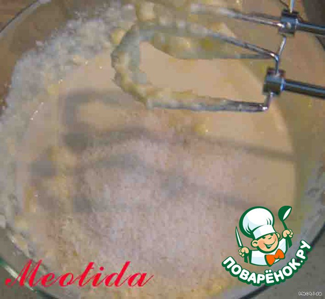в одну миску добавляем кокосовую стружку и взбиваем миксером в однородную пушистую массу