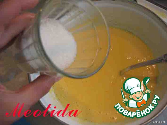 яйца, сахар и сухую смесь для пуддинга хорошенько смешиваем венчиком, чтобы не было комочков