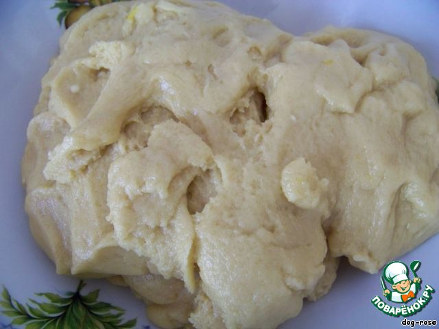 Замешиваем тесто (мука, теплое молоко, дрожжи, сахарный песок, масло). Добавляем щепотку соли, цедру с 1 лимона. Даем ему немного постоять в теплом месте, чтобы увеличилось в объеме примерно вдвое (минут 40).
