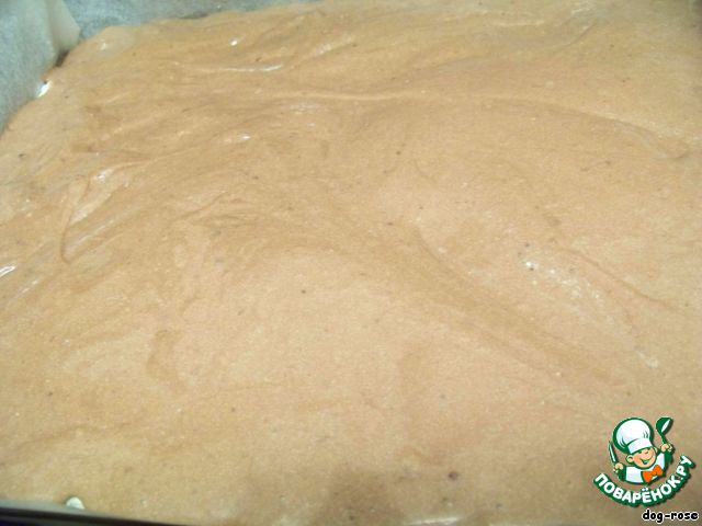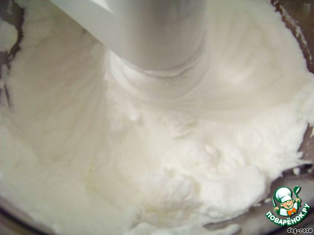 Перемешиваем белковую пену с пудингом. Полученную массу выкладываем на торт сверху.