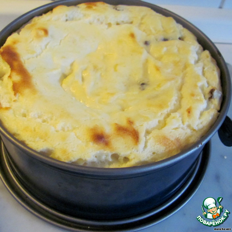 Полученное суфле выложить на корж и выпекать 20-25 минут при 190 градусах.