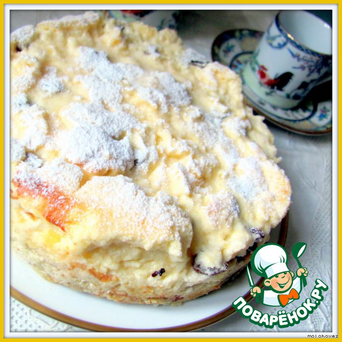 | Легкое творожное суфле на песочном корже. Из юбилейного выпуска немецкого журнала "Essen und Trinken". |