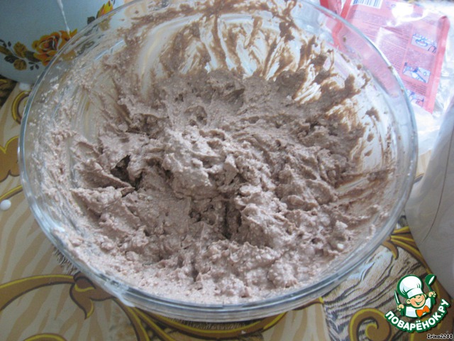 Меня, как всегда, ждал полный облом, т.к. я взбивала миксером, и крупинки творога остались (но это уже на любителя, хотите однородную массу - взбивайте блендером, я поленилась)