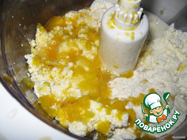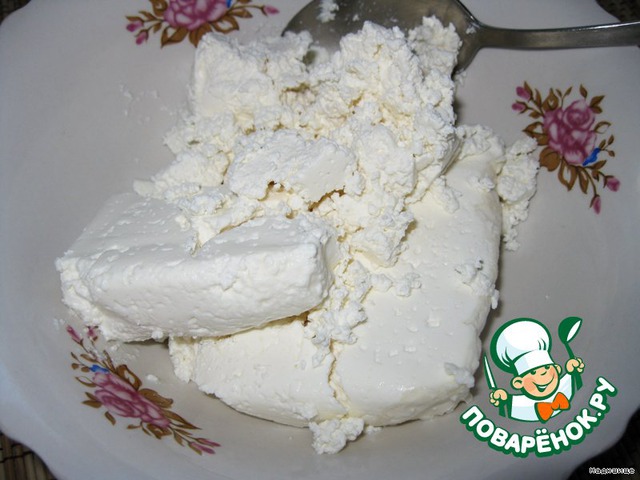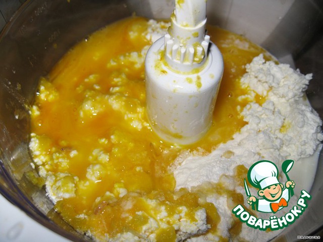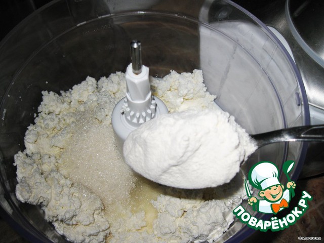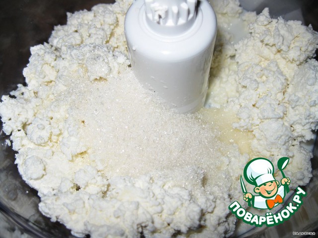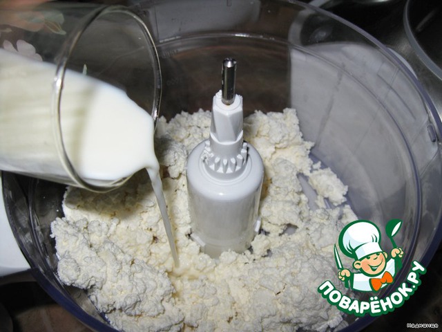 теперь начинка: творог выкладываем в миксер