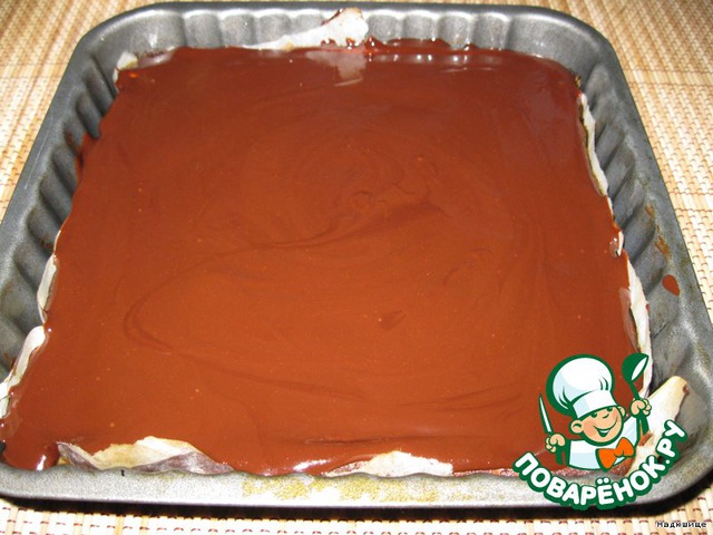 Заливаем глазурью творожную начинку торта и ставим в холод на ночь (лучше всего) или на 4 часа.