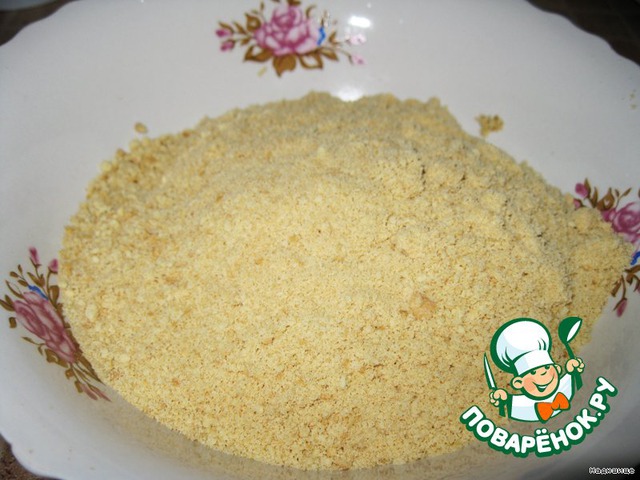 Готовим основу: измельчаем печенье в мелкую крошку. У меня было простое печенье.
