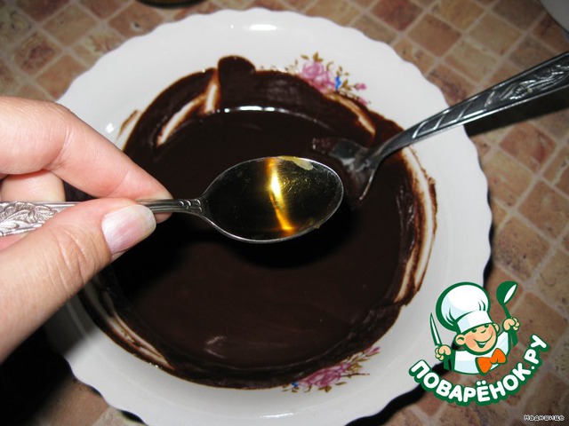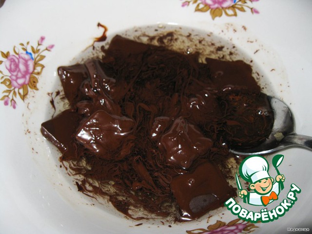 И заливаем горячим сиропом наломанный кубиками шоколад. Перемешиваем.