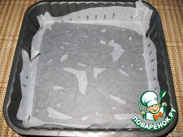 Смазываем маслом форму для выпекания. Выстилаем бумагой для выпечки.