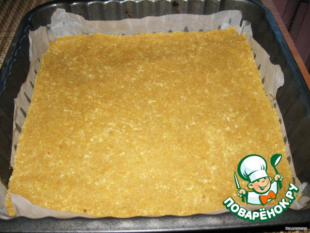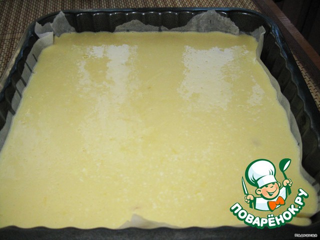 И готовой творожной массой заливаем основу в форме.