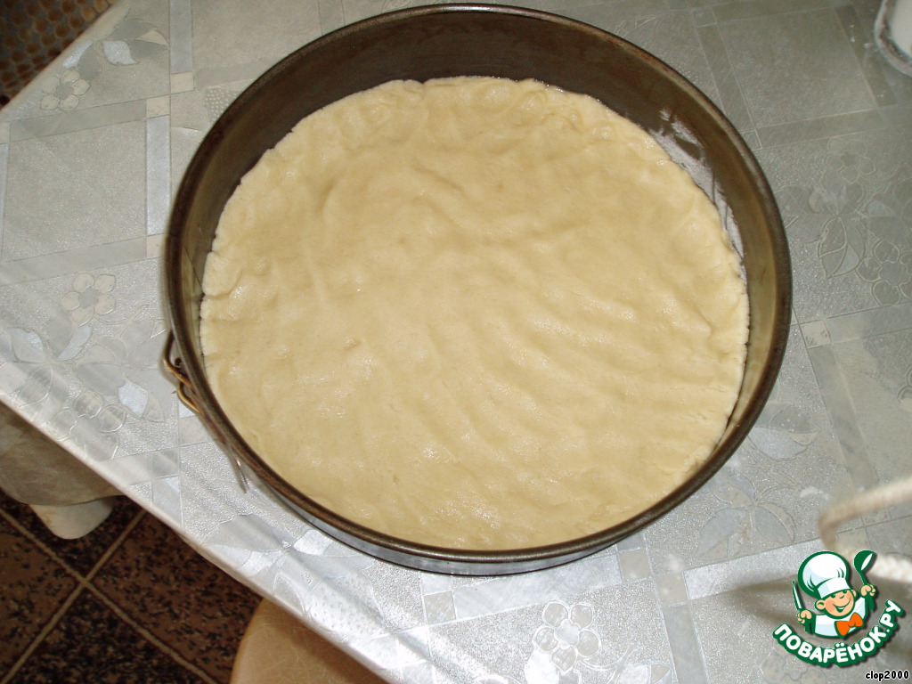 Выкладываем тесто в форму, смазанную маслом, распределяя и прижимая его руками