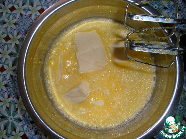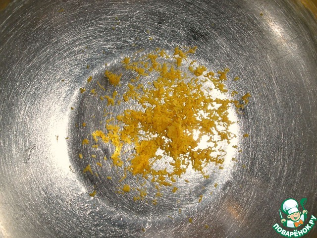 Добавить к цедре яйца, крахмал. Взбить миксером или блендером.