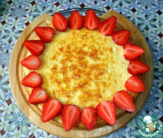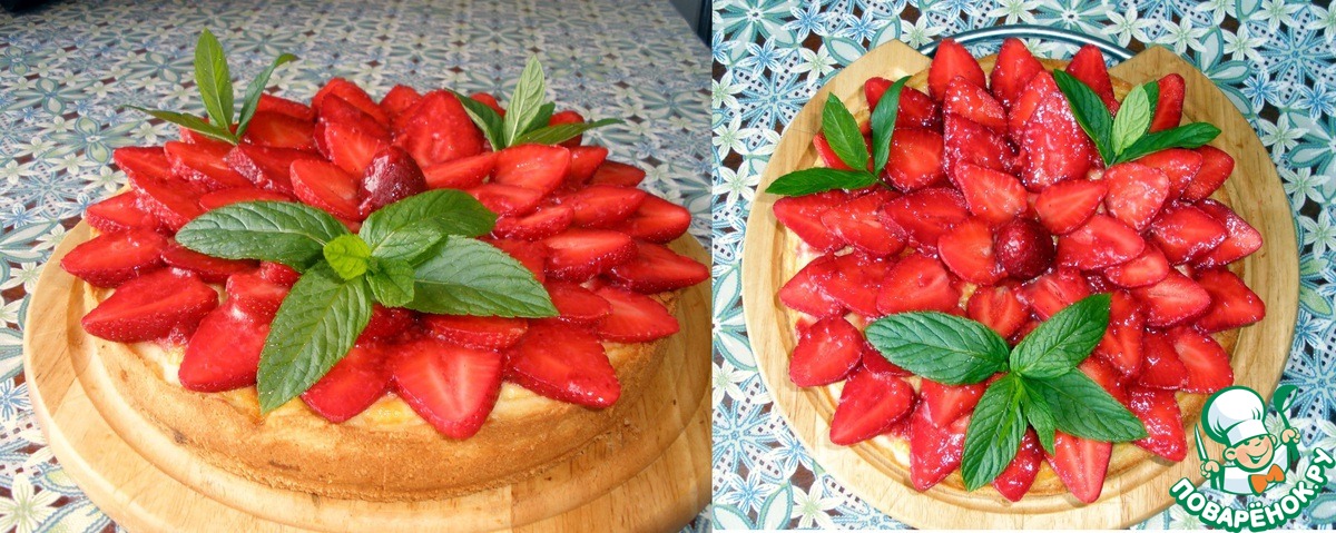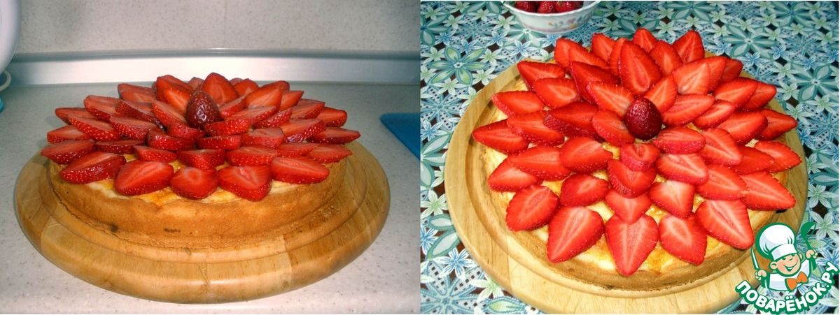 | Этот рецепт мне дала моя подруга. Когда я его попробовала - я влюбилась в него! Нежнейший, ароматный, очень вкусный. Рекомендую всем попробовать его приготовить - это не сложно. Рецептов конечно много... Но я решила выложить свой вариант. P.S. Его можно готовить с любыми другими фруктами (персик, абрикос, манго и т. д.), но для меня идеальное сочетание вкусов именно с клубникой. Поэтому во время созревания клубники - этот торт король на моём столе. |
