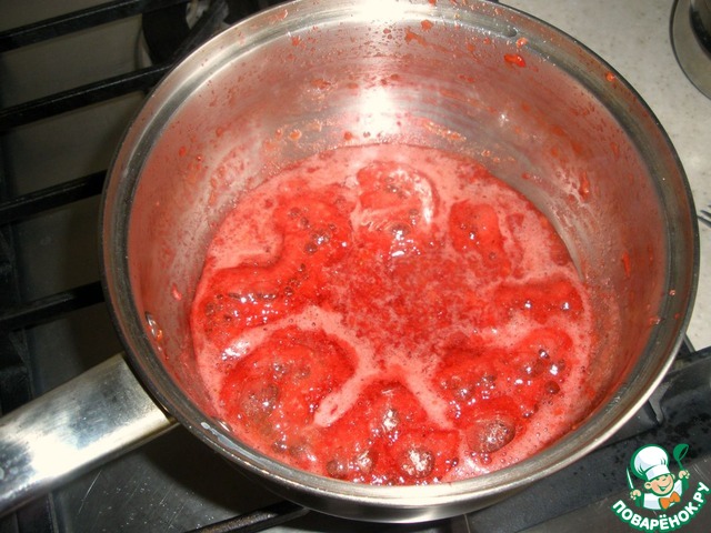 Глазурь. 5-7 крупных ягод клубники размять вилкой или блендером, добавить сахар.
