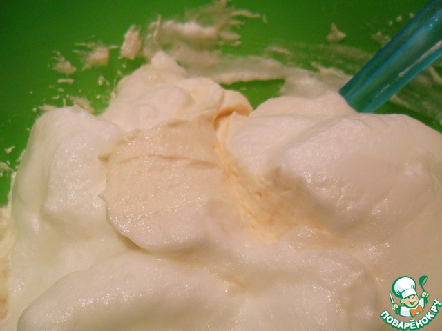 Дальше взбиваем миксером белки до "пиков". Напомню тем кто забыл или не знает - добавьте щепоть соли и каплю лимонного сока - результат будет 100%.