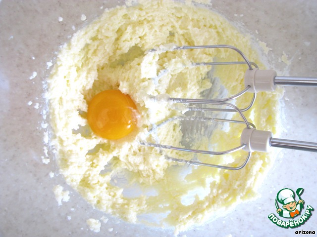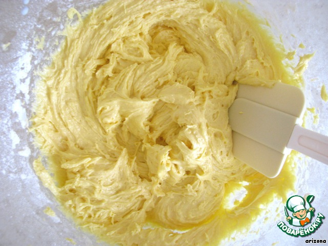 Нагреть духовку до 180 градусов. Сливочное масло комнатной температуры взбить с сахарным песком и ванильным сахаром. Яичные желтки отделить от белков и по одному добавить во взбитое масло.