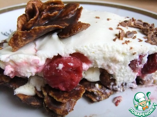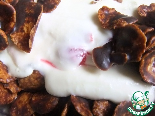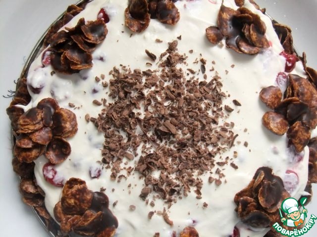 Творожный торт с вишней и кукурузными хлопьями
