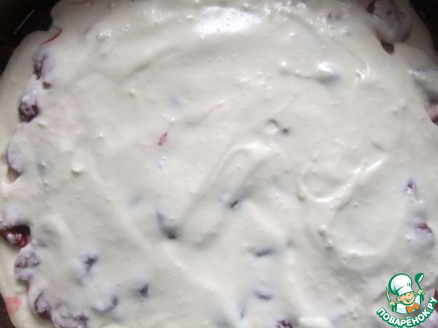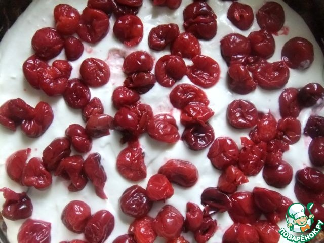 На него равномерно уложить вишни.