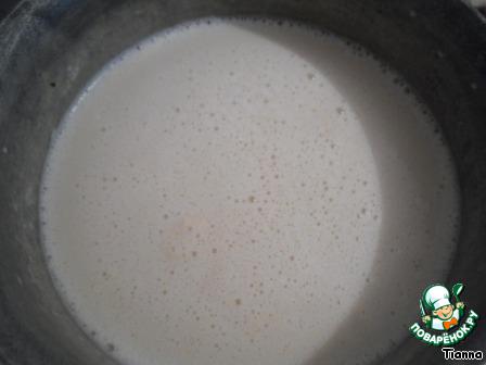 Молоко налить в кастрюльку, всыпать туда творог и поставить на медленный огонь. Довести до кипения. Горячее молоко тонкой струйкой влить в яйца, постоянно их помешивая.