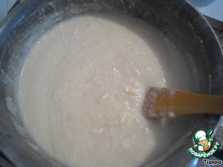 Сначала сварим крем. Яйца нужно немного взбить с сахаром, затем добавить муку. Тщательно перемешать, для того, чтобы не было комочков.