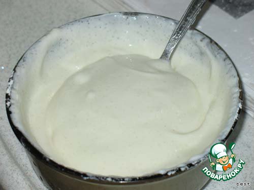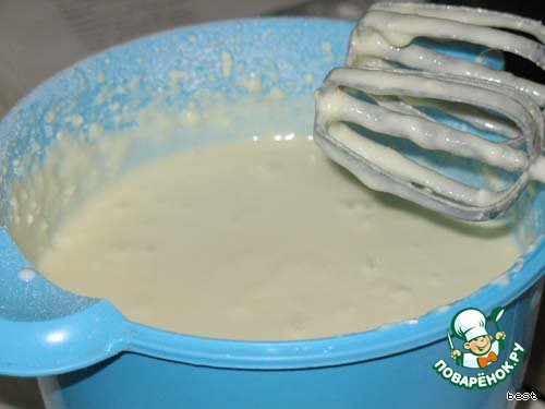 Взбить миксером творог для начинки с 1 стаканом сахара, постепенно влить молоко и добавить ванильный пудинг.