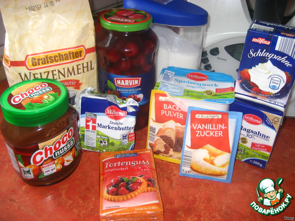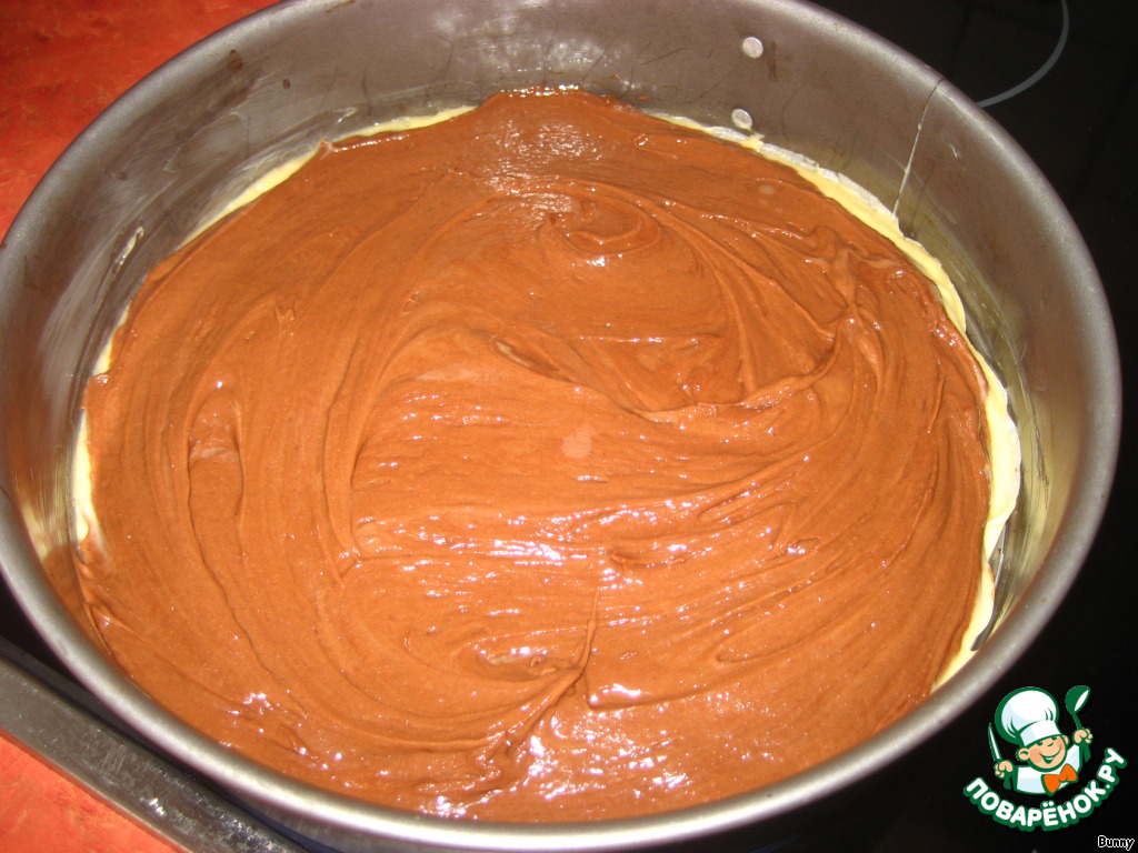 "Нутеллу" смешать с остальным тестом и так же выложить в форму.