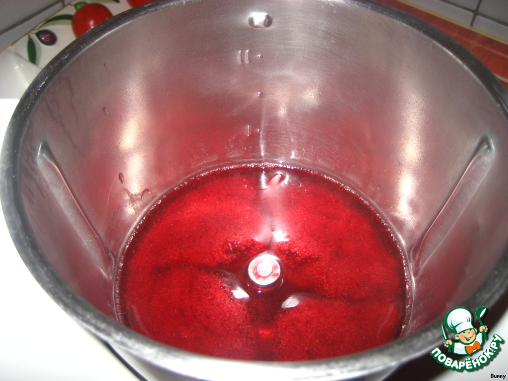 В вишнёвый сок добавить воду до отметки 400мл. Желе, 50гр. сахара и сок вскипятить помешивая.