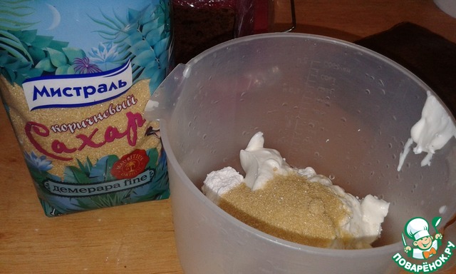 Оставляем кисель остывать. В это время взбить творог со сметаной и оставшимся тростниковым сахаром