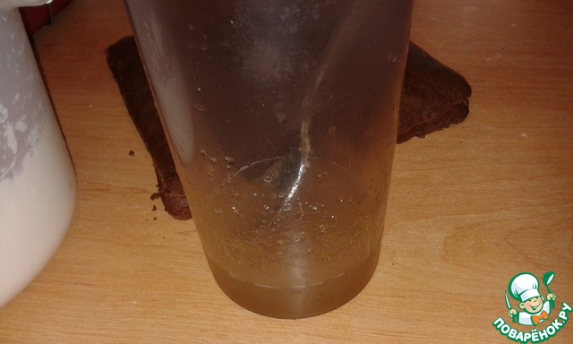 Затем тонкой струйкой вводим крахмал, разведенный в 50 мл воды и кипятим еще минутку помешивая