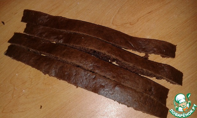 На застывший торт выложить рамкой полоски теста. Застывшие шарики обвалять по желанию в сахарной пудре. Нанести зубочисткой пожелание