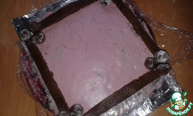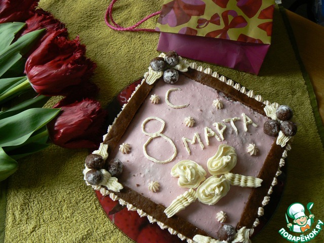 | Поздравляю всех женщин поварят с праздником! Счастья, улыбок, весеннего настроения и море цветов! Предлагаю всем угоститься шоколадным тортом с нежным творожно-вишневым кремом. |