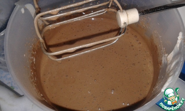 Для коржа взбиваем миксером все ингредиенты кроме муки, пока сахар не растворится