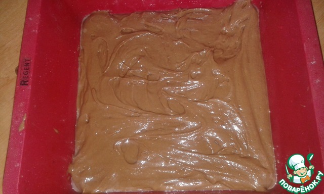 Затем добавляем просеянную муку и еще раз перемешиваем. Выливаем тесто в форму и выпекаем при 175 градусах около 30 минут