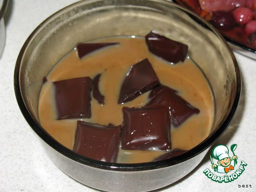 растопить шоколад в микроволновке вместе с ликером.