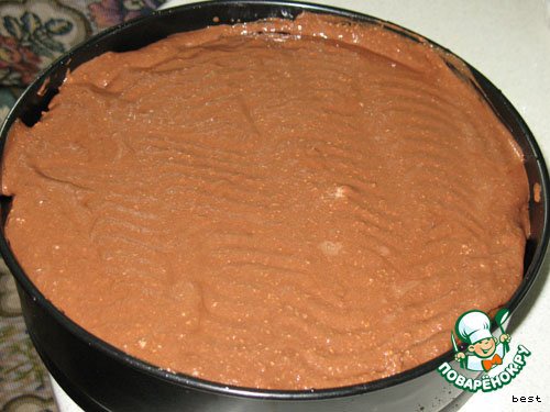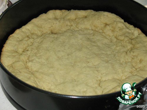 Выложить тесто в форму (у меня 24 см), разровнять и печь при 180*С около 10 минут.
