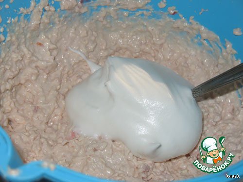 Отдельно взбить белки в пену и ввести в начинку.